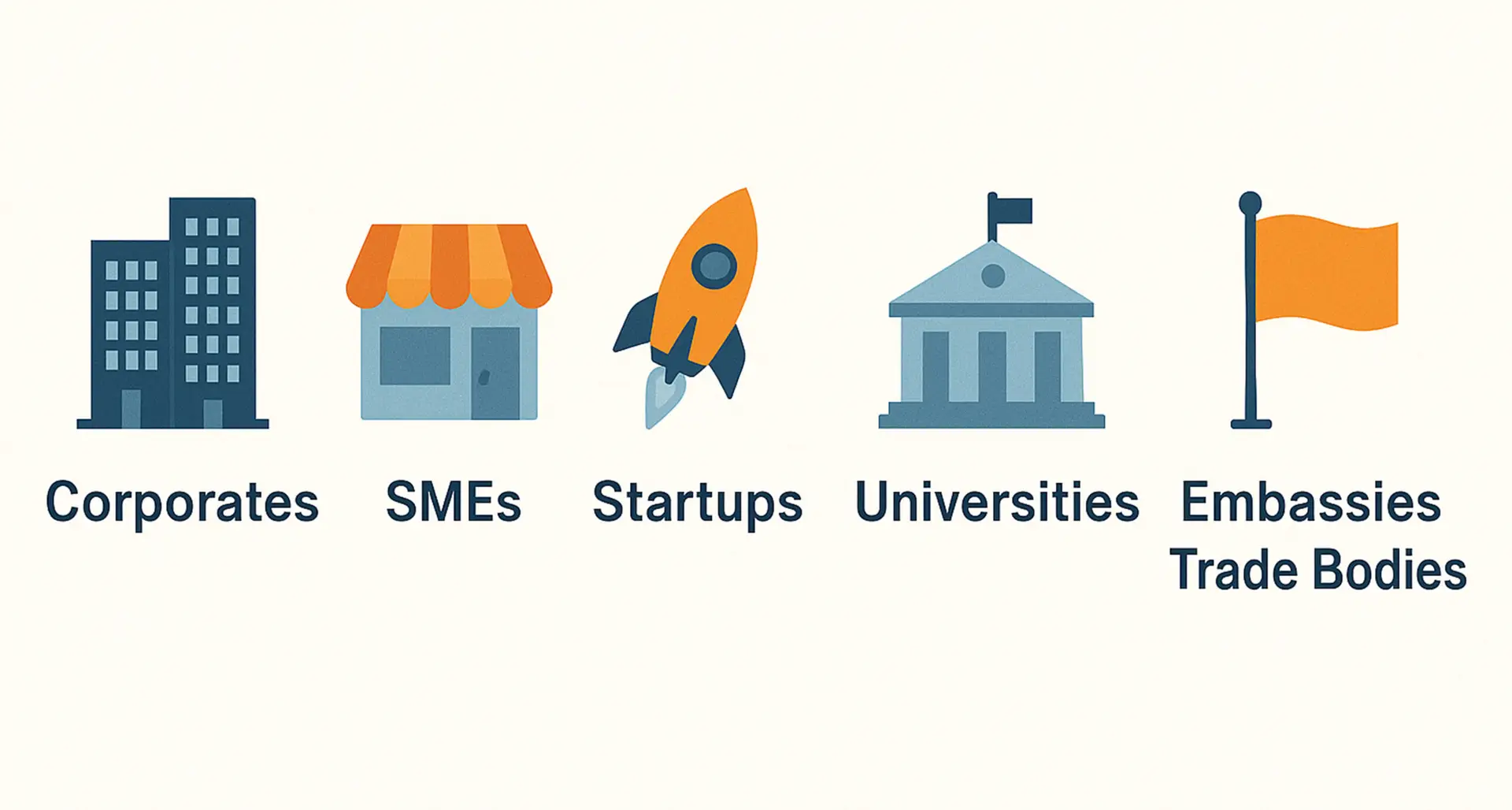 Corporates, SMEs, startups, universities, embassies, trade bodies, and ecosystem enablers aligned with bilateral growth.